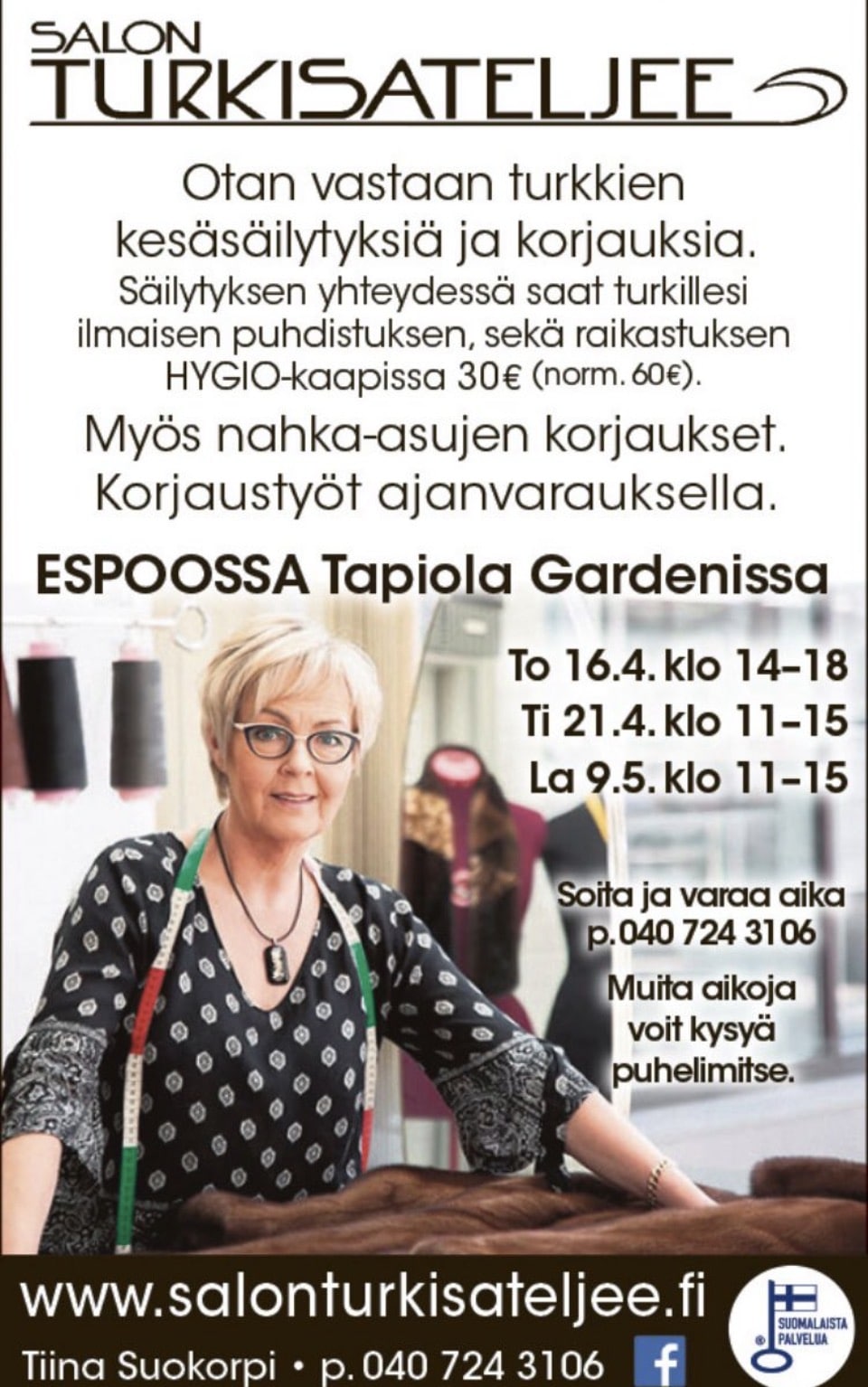 Turkiskorjausten ja kesäsäilytysten vastaanotot Espoossa ja Lohjalla